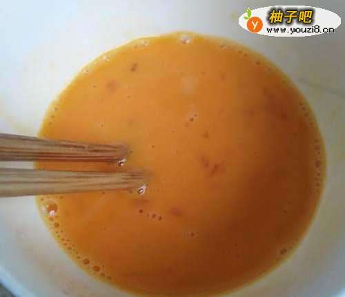 3根据个人爱好准备好两个土鸡蛋,将鸡蛋先打散。