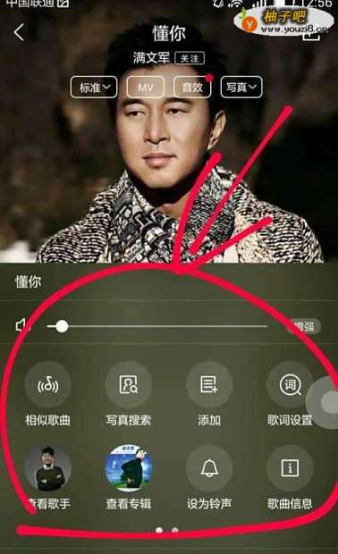 5接下来,我们就会在音乐播放页面下方看到诸多功能选项的选项框产生;
