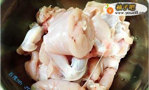 2这里准备的是已经处理好的田鸡肉,我们在购买田鸡时最好让师傅帮忙处理一下,去除外皮以及剁好肉,外皮有较多寄生虫,直接不用,田鸡外皮对于不是熟练的人也不是那么容易剥的,直接让师傅处理,快捷方便。