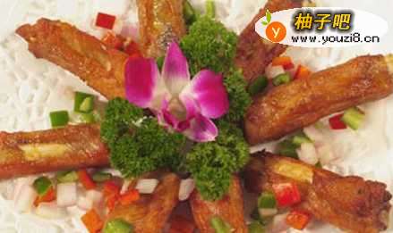 5加入红椒末、葱白末、青椒末、适量椒盐炒香,均匀洒在排骨上,这道菜做好了