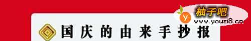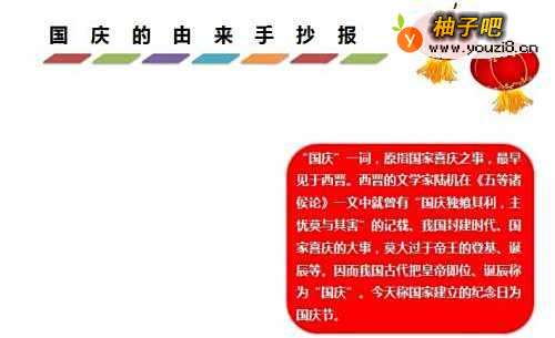 4在【国庆的由来手抄报】标题的下方右侧处,在框内写上字,如下图所示。