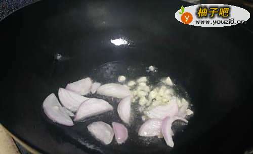 3起锅烧油,加洋葱爆香,如下图!