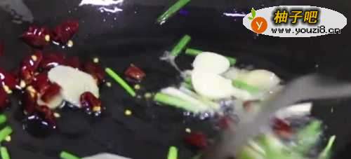 3生姜大蒜切碎,小葱切段,青椒切成丝,干辣椒切断