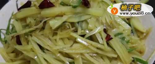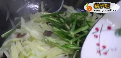 7倒入土豆丝,加入少许盐和白醋翻炒