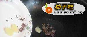 5另取锅,油热,小火,放下花椒,姜片煎出香味