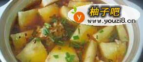 4萝卜洗净切厚片,准备好姜,花椒,郫县豆瓣酱,老抽,葱