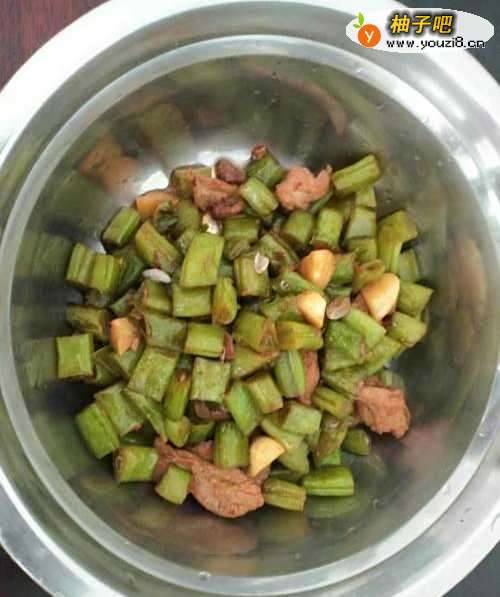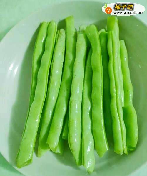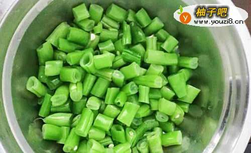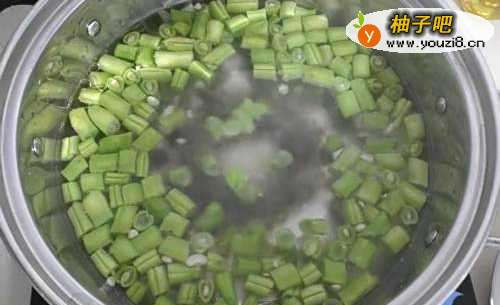 4把四季豆再开水里焯3分钟,捞出沥干水分。