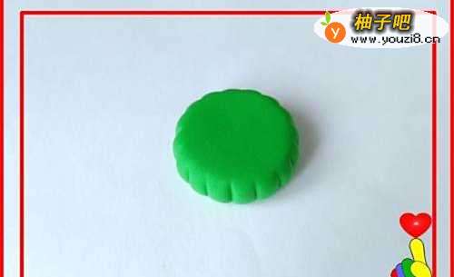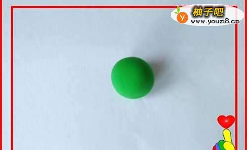 取绿色彩泥适量,滚搓成一个小圆球。