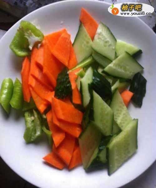 2胡萝卜,黄瓜,洗净切片。