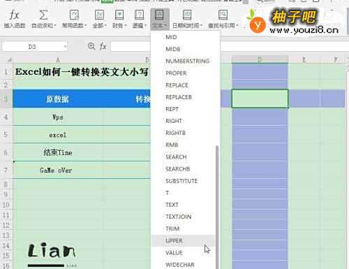 1、首先,打开WPS Office Excel数据表格;2、选择单元格【B4】,点击【公式】—【文本】;3、在“文本”函数列表中,选择函数【UPPER】;4、在“函数参数”对话框,输入字符串【A4】,点击【确定】;5、选择单元格【B4:B7】,按【CTRL+D】填充公式即可。