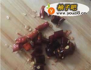3锅洗干净,放入适量的油,烧热,然后放入干辣椒和蒜蓉酱,炒香。