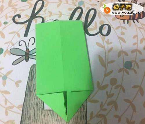 首先将一个长方形折纸沿中线对折,如下图所示。