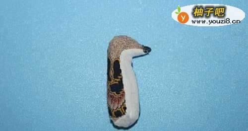 2身体缝好,塞入棉花收口,然后缝一个嘴巴。