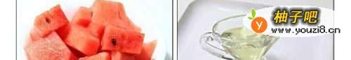 西瓜切成小块,取出西瓜子,放入搅拌机。