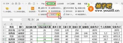 3单击【生成工资条】