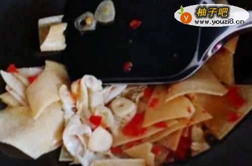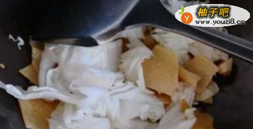 3干豆腐切成菱形片 刚好与白菜片搭配