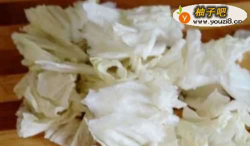 2片着切白菜帮子 这样熟的更快些 吃着纤维也短些
