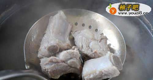 2排骨冷水入锅,焯去血水,捞出再次冲洗干净备用;