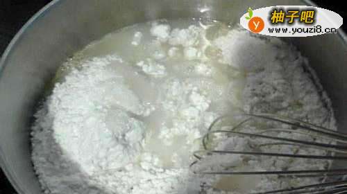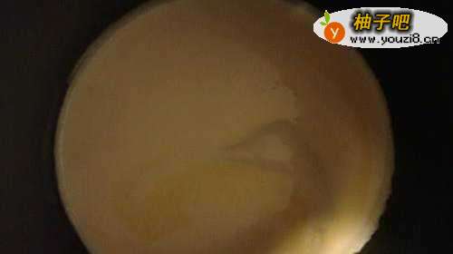 2面粉搅拌均匀后放一会静置备用。然后起平底锅,开小火,放入适量牛油慢慢融化。如果没有牛油也可以用食用油或者大油。