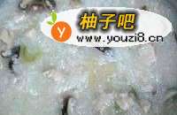 4锅里做10倍的水(米与水的比例是1:10或1:12)烧开后放入泡好的大米,姜片,葱白和少许油