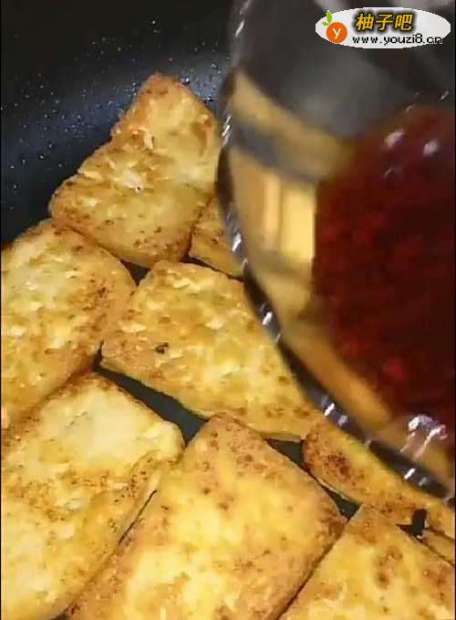 3锅中加油,油温五成热时,加入豆腐,煎至两面金黄即可。