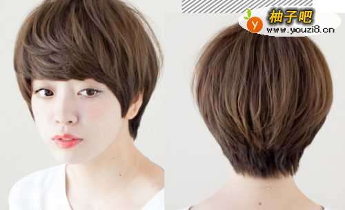 眉上刘海搭配层次短发简单清新,搭配上板栗色染发就很美很有气质。整体墨获设计比较简单,日常打理也相对简单很多,适合懒癌星人。