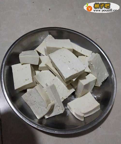 如图,首先准备新鲜的老豆腐,清水冲一下,然后切成小块。