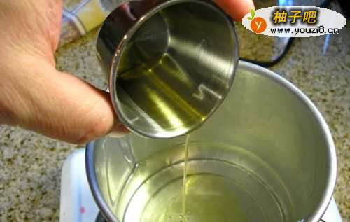 2融化凝胶蜡,加入香精。舀出合适的蜡量给你的眼镜,然后放在上面融化。用筷子定期搅拌。凝胶蜡需要慢慢融化。把火开得太高只会烧焦蜡。耐心,慢慢加热,继续搅拌。