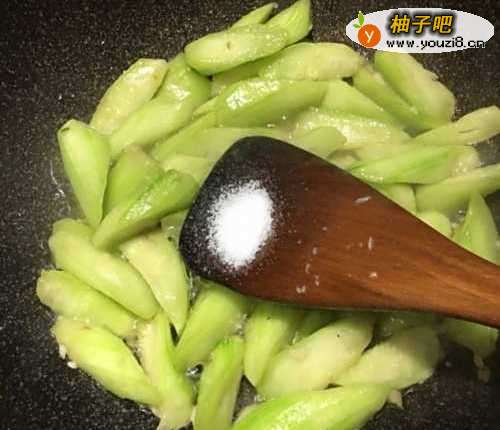 4炒至丝瓜变软,加入盐和鸡精翻炒均匀