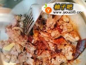 5加入料酒,焖一会后,加入生抽老抽翻炒,上色