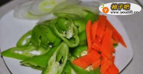 5将尖椒,大葱,胡萝卜,蒜切片备用。