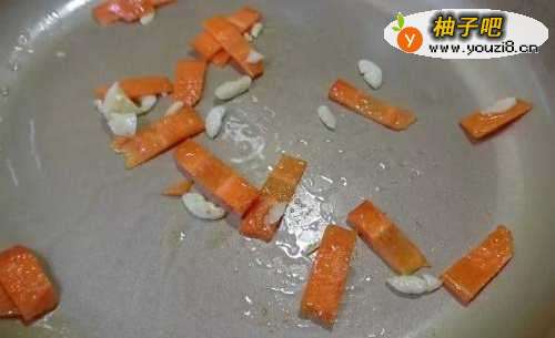 2热油锅用大蒜煸炒红萝卜