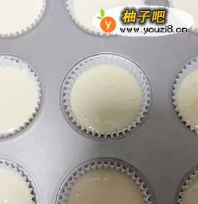 6打好的蛋糕液加入烤盘,我用的马芬蛋糕加的蛋糕托,放入预热好的烤箱内,烤20分钟