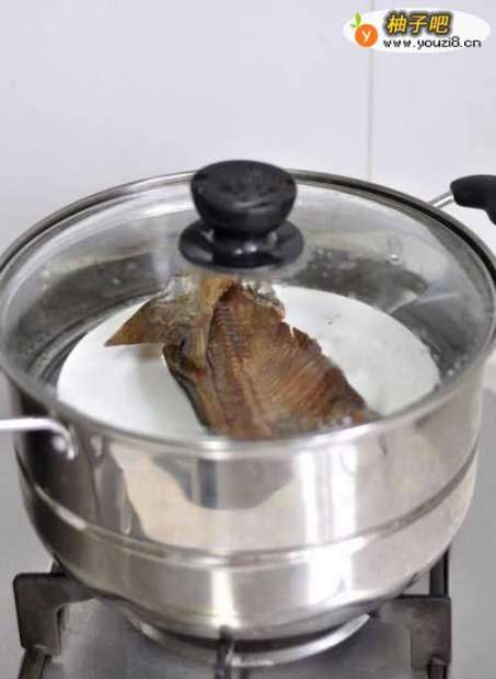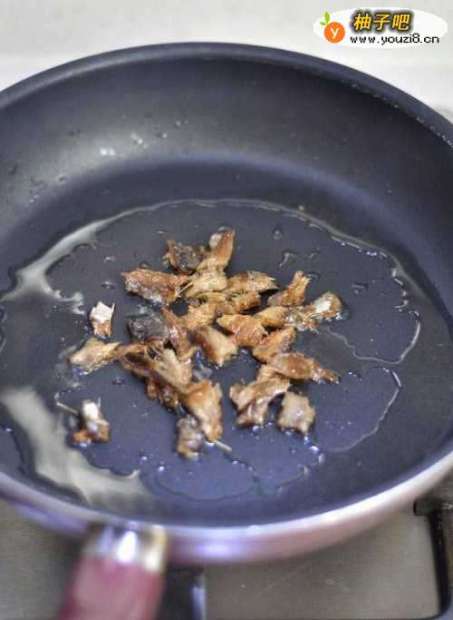 7锅里倒适量油,油热后倒入鱼干煸炒片刻