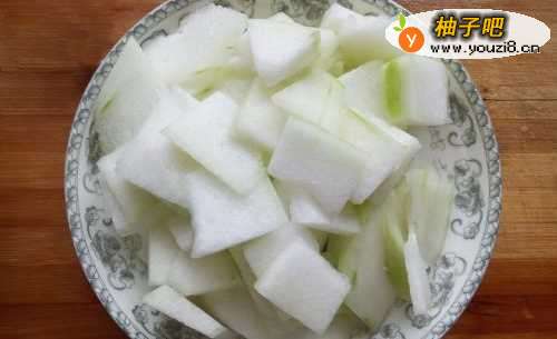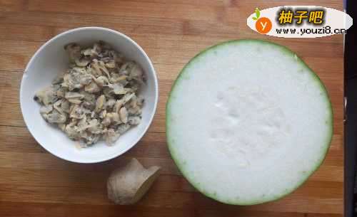 首先准备好冬瓜、蛤蜊(蛤蜊汤也要备用,没有蛤蜊汤就用水)、姜。