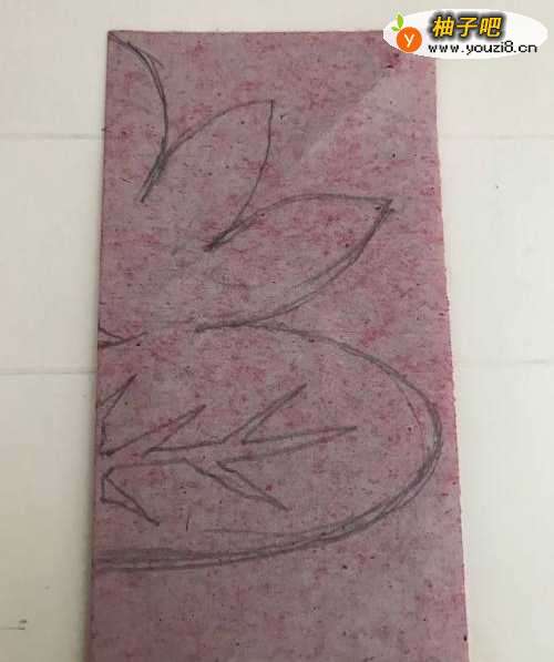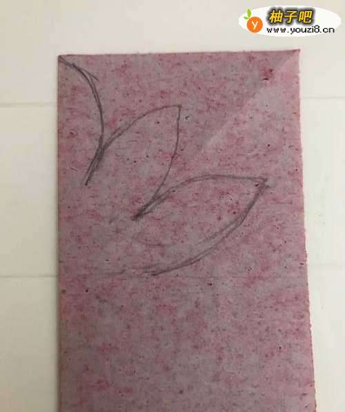 2第二步 对折好之后 再把它竖起来 双边放在左边 然后拿起绘图铅笔画上几瓣简单的荷花草图轮廓