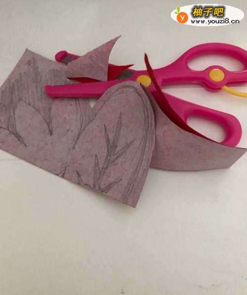 5第五步 都涂实好之后 再拿起手工剪刀开始裁剪 首先把图案外面多出来的彩纸剪掉一部分