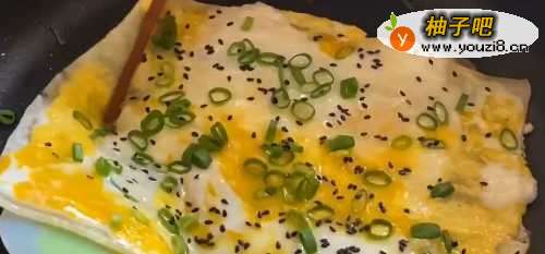 5撒上芝麻、小葱花,两面都煎一下