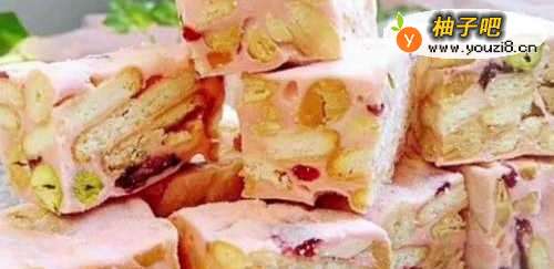 雪花酥口感松脆酥软的甜点。将花生、饼干、等混合,与加热融化的棉花糖和黄油搅拌均匀,放入模具中,撒上奶粉,完全晾凉前切块装入袋子.好吃又营养!