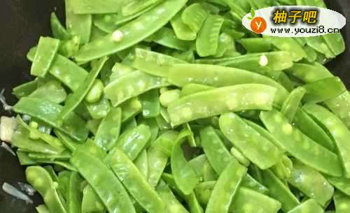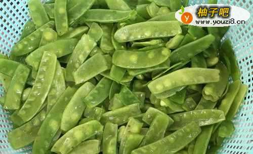 2牙兰豆摘好洗干净,准备姜葱蒜、干辣椒,处理好。