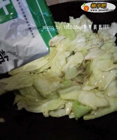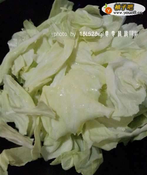 3油烧热后,将莲花白倒入锅里,大火翻炒;