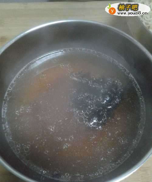 3将骨汤和适量水烧开,并将朝鲜面在汤中煮30秒捞出