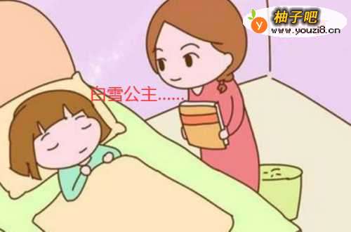 孩子上床躺下后讲睡前故事帮助幼儿进入梦乡。