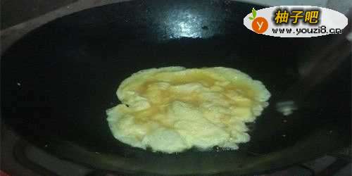 3将蛋液缓慢倒入锅中,翻炒几下至金黄色,出锅后备用。