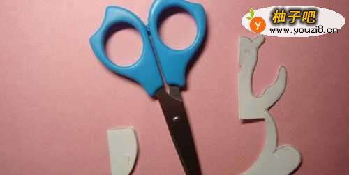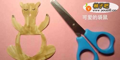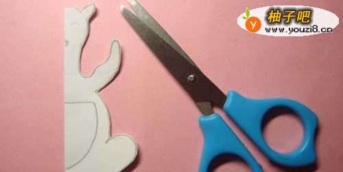 3然后,把白纸上可爱的袋鼠的轮廓图形,用剪刀慢慢的剪出来,摆放在桌子上,如下图所示。