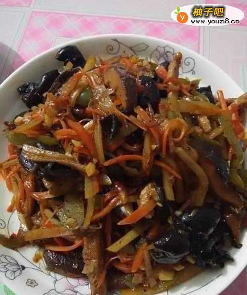 10再将木耳倒入锅中,所有食材一起炒。
