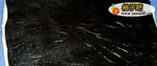 3然后,把白豆沙按压平整如下图所示,把它按压成16*10厘米的片状,厚底要适宜,再用小刀把四周修整平整。同样,另外铺一张保鲜膜,放上枣泥,擀成同样大小的片状。
