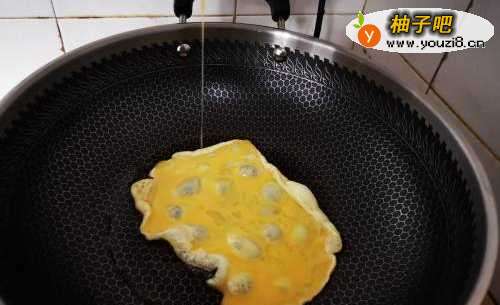 3先倒入鸡蛋翻炒熟,炒熟后把鸡蛋倒入碗中备着。