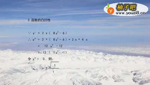 4二阶导数,是原函数导数的导数,将原函数进行二次求导。一般的,函数y=f(x)的导数yˊ=fˊ(x)仍然是x的函数,则y′′=f′′(x)的导数叫作函数y=f(x)的二阶导数。在图形上,它主要表现函数的凹凸性。