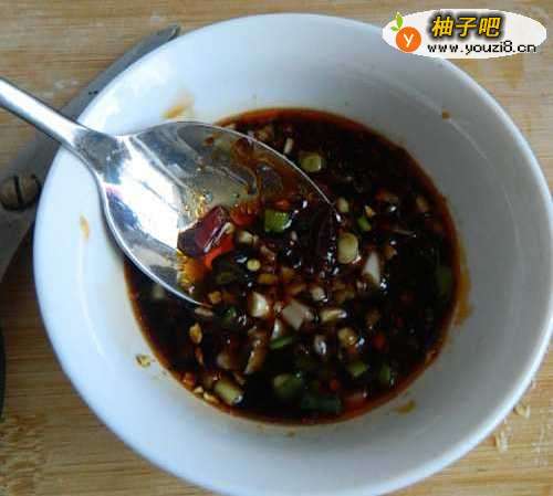 4生抽2勺、醋2勺、盐、辣椒油1勺、芝麻油少量、蚝油半勺、蒜泥1勺、水3勺调成料汁